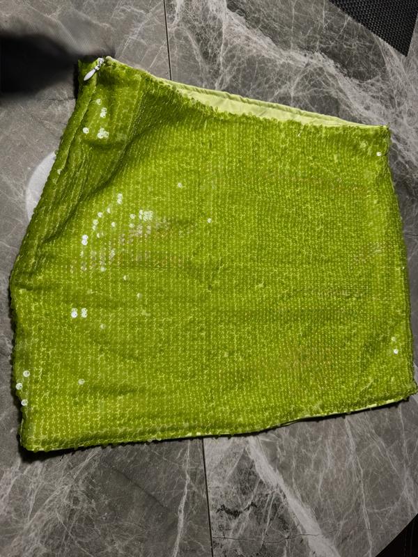 Спідниця міні з пайєтками на підкладці з боковою блискавкою, шикарний колір молодої соковитої трави якісний пошив. Довжина - 35 см, ПОТ- 40 см по стегнам 46 см та гарно тягнеться тканина. Підійде на розмір S та М. Виглядає вау 🎉
