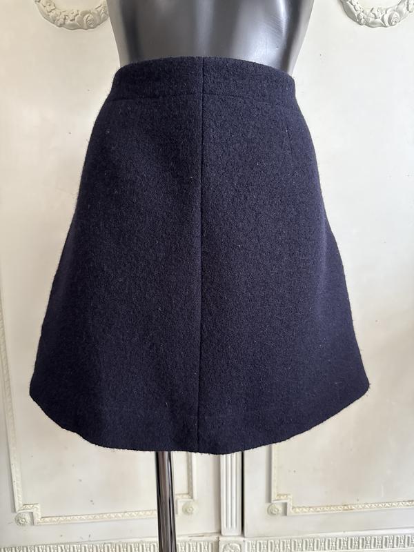 Колір темно-синій. На підкладці в тон. Склад:вовна-100/. Застібка-змійка в боковому шві. Розмір по бірці-38. Заміри: довжина-45 см, ПОТ-37 см, ПОБ-44 см. Без карманів. Стан ідеальний.