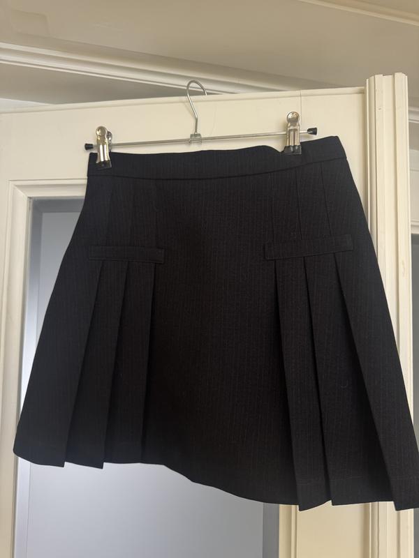 Стильна чорна міні-спідниця з плісе Лаконічна модель із акуратними складками, яка гарно тримає форму та додає образу елегантності. Базовий чорний колір легко поєднується з сорочками, жакетами та светрами — ідеально як для офісних, так і casual образів. Стан: дуже хороший Колір: чорний Довжина: міні