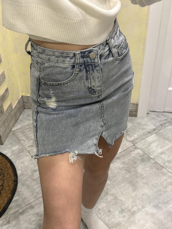 Джинсова блакитна спідничка Заміри можу надати за потреби, по факту розмір S В мене зріст 168 см