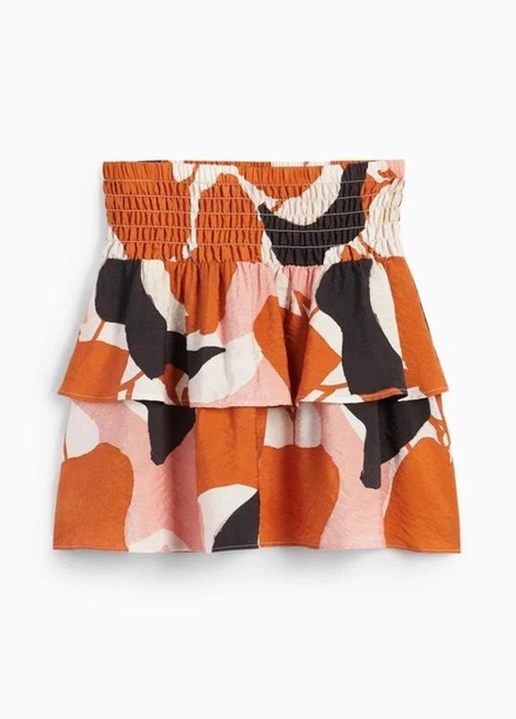 Легкая летняя юбка от немецкого бренда C&A. Благодаря своему дизайну и материалам, она отлично подойдет для создания яркого повседневного образа в теплое время года. Модель имеет многослойную структуру с воланами, что добавляет изделию объема и легкости. Широкая эластичная резинка на талии обеспечивает комфортную посадку и свободу движений. Абстрактный разноцветный узор в теплых оттенках (коричневый, оранжевый, розовый). Изготовлено из легкой вискозной ткани, позволяющей коже «дышать». Ткань имеет слегка жатую текстуру. Указан размер 40. Замеры: Полуобъем талии 38 см (+) Полуобъем бедер ориентовно 70 см Длина по боковому шву 45 см Состав: 84% вискоза, 16% нейлон.