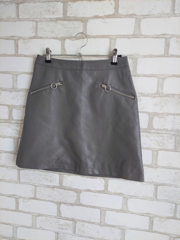 юбка из искусственной кожи,два карманчика на замотках, Длина 42см, талия 34 не тянется, в бедрах46см,низ 52см