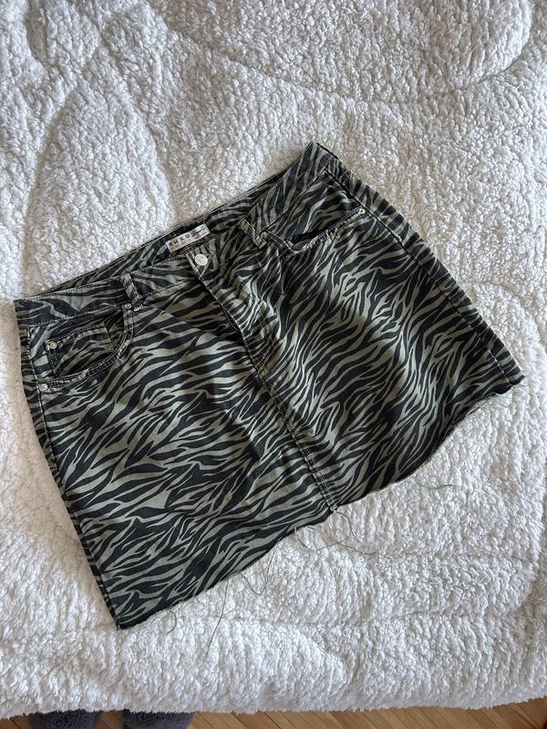 Міні спідниця джинсова на весну/літо, під зебру у 18 UK розмірі. З карманами.
