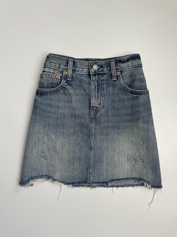 ▪️ класична джинсова міні-спідниця від бренду Levi's. Вона має середній відтінок синього деніму з ефектом потертості та необробленим нижнім краєм, що додає моделі вінтажного вигляду ▪️розмір 28 : півобхват в поясі 38 см в стегнах 53 см довжина 40 см ▪️склад : 100% cotton ▪️стан : без дефектів