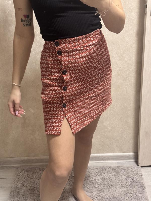 Міні спідниця Розмір 34 H&M Віскоза 100% Довжина 40 ТАЛІЯ 63-65 Бедра 90-94 Одягнуто на параметри : Хс Зріст 155 Талія 64 Бедра 90