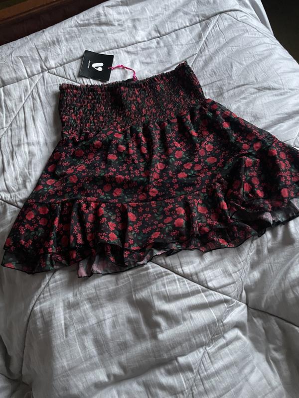 Міні спідничка, актуального крою, зверху сітка, під низом підкладка, талія середня і має резинку