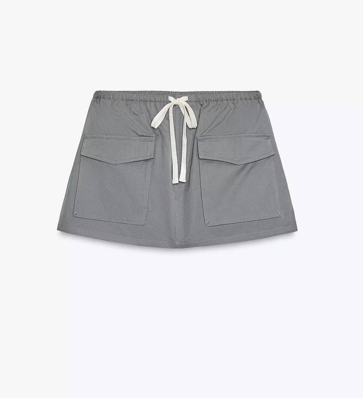 Спідниця-шорти з еластичним поясом. Регульований пояс на контрастних білих шнурках та великі накладні кишені з клапанами спереду. розмір XS