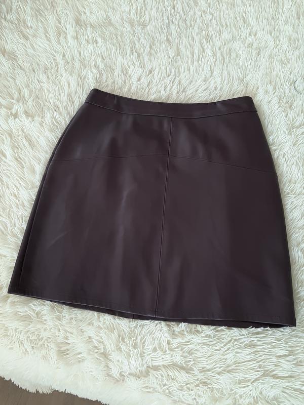 Юбка из искусственной кожи бордового цвета.Размер 10. Полуобъем талии-36 см. Полуобъем бедер-47 см. Длина -45 см Без дефектов.