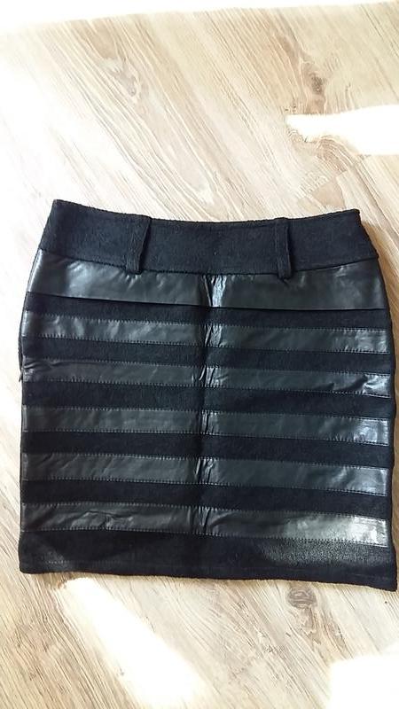 Тепла спідничка на підкладі,декорована вставками з шкірзамінника