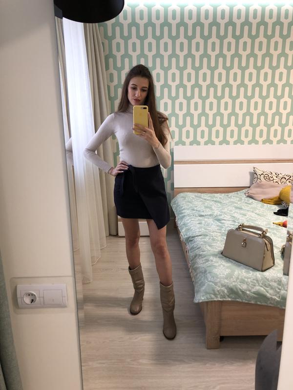 Спідниця темно-синього кольору на запах. Пів обхват пояса -34 см Довжина -43 Розмір -S Бренд H&M