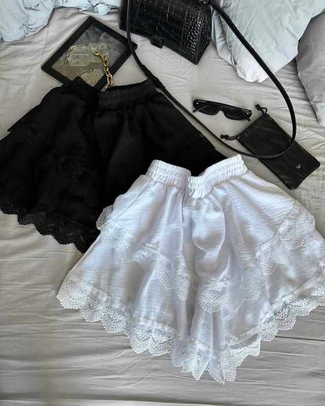 Юбка шорты женская мини с кружевом лен жатка белая черная