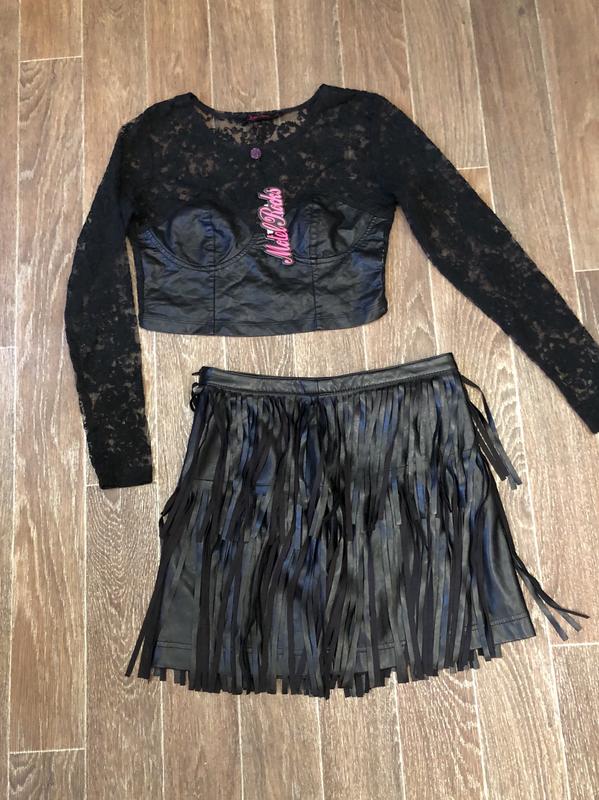 Новый топ в размере XS/S, материал кружево/кожзам, длина 40 см, цена 360 грв! Юбка в стиле бохо H&M, не носилась , размер М, маломерит, длина 40 см, ПОТ 35 см, цена 450 грв!