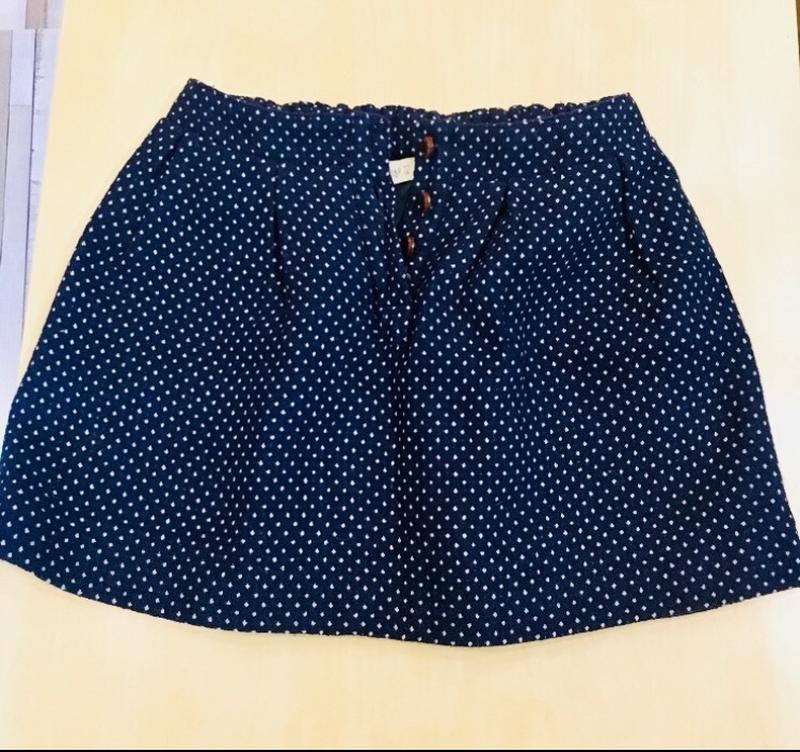Юбка молодежного бренда Pull&Bear. Размер XS. Очень стильная, плотная ткань, пояс на резинке, с карманами, с подкладкой. Цвет темно-синий в белый горошек. Одевалась несколько раз, в хорошем состоянии, как новая. Отправка по Украине.