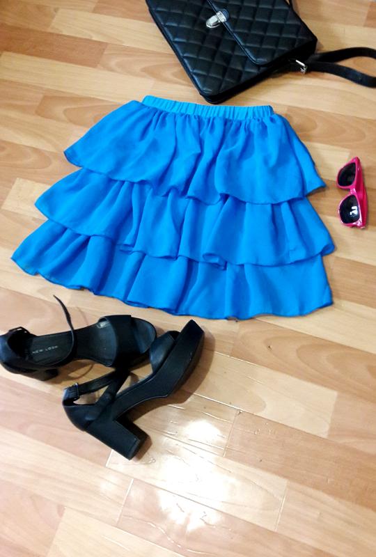 Чудова повітряна спідничка з воланами, С-М. Талія на резинці ( в спокійному стані 30 см, тягнеться до 45 см), бедра вільні, довжина 45 см.