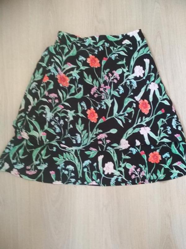 Спідниця з квітковим принтом на літо. Ззаду пояс на резинку. З боку засувається на блискавку.