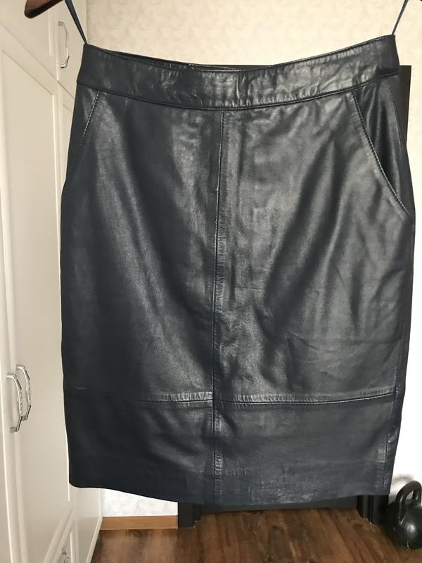Продам кожанную юбку темно синюю, размер 34, идеальное состояние