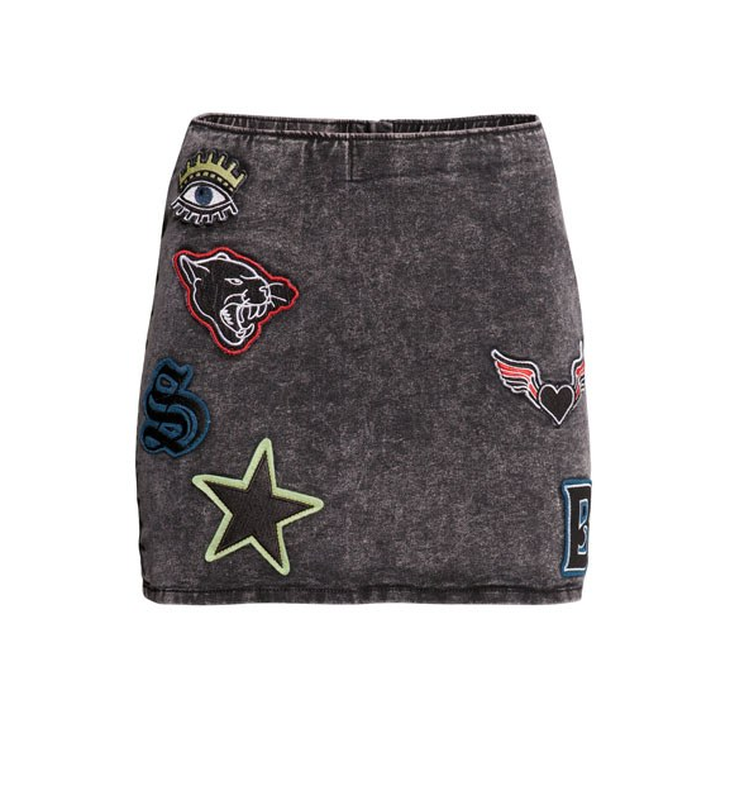 Джинсовая юбка с нашивками H&M на худышку Покупала здесь, не подошла по размеру Пояс 30 см / тянется до 36 см ПОБ 38 см / до 45 см Длина 34 см Состав: 83% коттон,15% полиэстер, 2% эластан