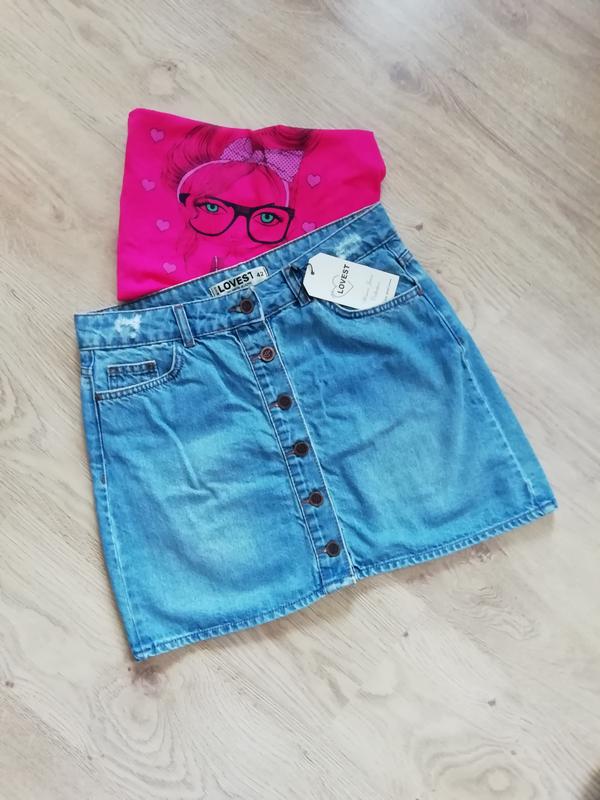 Нова джинсова спідниця на болтах, можна спереду повністю розстібнути. Заміри: Пот 40 см Довжина 41 см