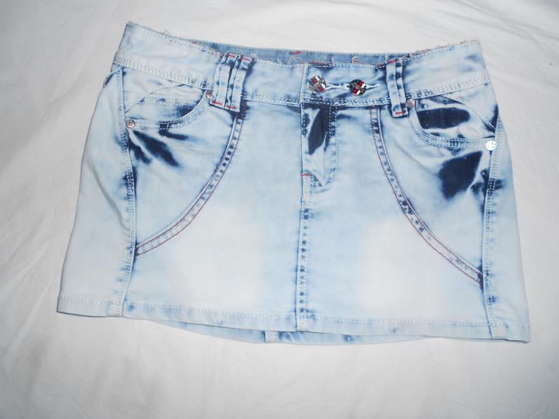 Джинсова спідниця.Розмір 27.Склад 10 % поліестер.90 % коттон . від 74 см про 82 см . довжина 29.5 див.