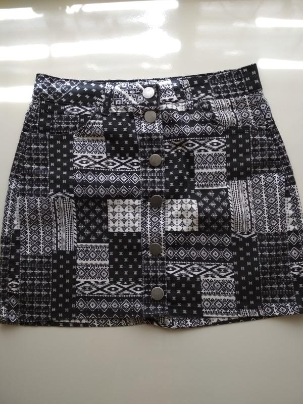 Трендова джинсова юбка на пуговиці в орнамент. Розмір М.