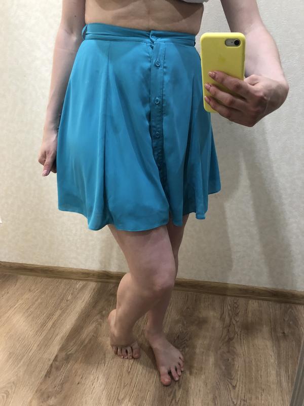 Коротенькая и легкая летняя юбка на пуговицах, талия 35 см, длинна 45 см.