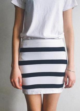 Полосатая мини-юбка на резинке. ПОТ 36, ПОБ 39, длина 38 см. Подойдёт на наш 44 размер.