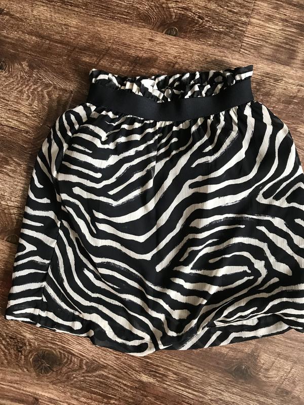 Летняя короткая юбка со стилизованным энимал-принтом , вверху на широкой резинке, с подкладкой, карманов нет. На XXS
