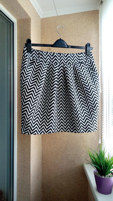 Красивая юбка мини в геометричный принт. 💎🧷 Без подкладки. 📌Полуобхват талии - 40 см, Полуобхват бедер - 52 см + несколько сантиметров за счет защипов по переду, Длина юбки - 46 см)