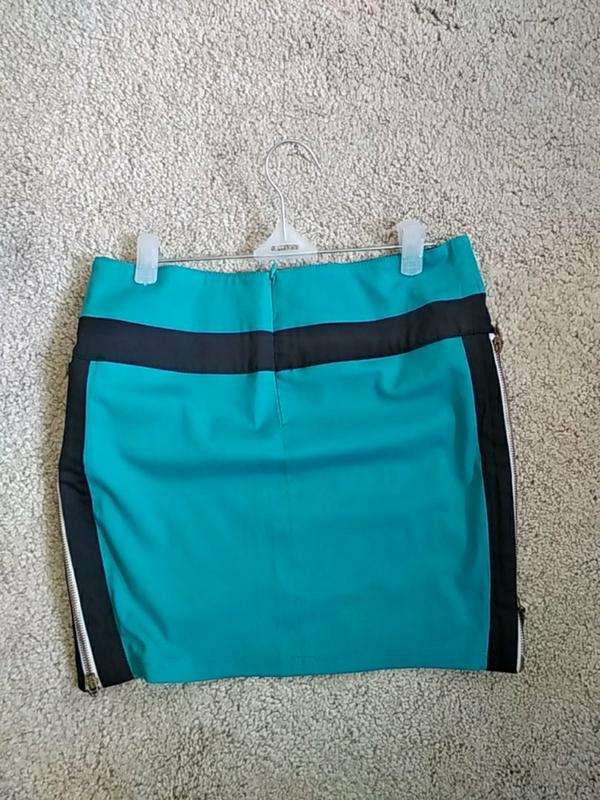 літня спідничка, гарного бірюзового кольору, з замочками по боках, підійде на розмір 36,38. стан ідеальний
