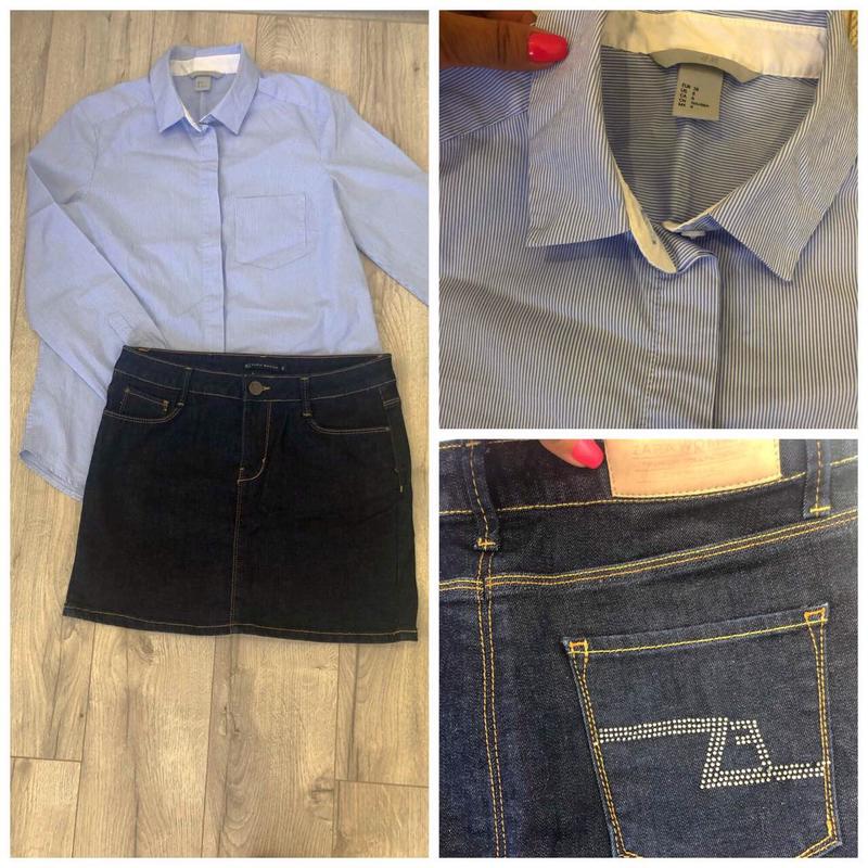 Верх рубашка в полоску H&M, новая, размер 38 (M), длина 65 см, ПОГ 45 см Низ джинсовая юбка Zara, выходила два раза, размер М, длина 44 см, ПОТ 38 см, материал мягкий коттон ( тянется), цена за все 480 грв! Продажа набором!