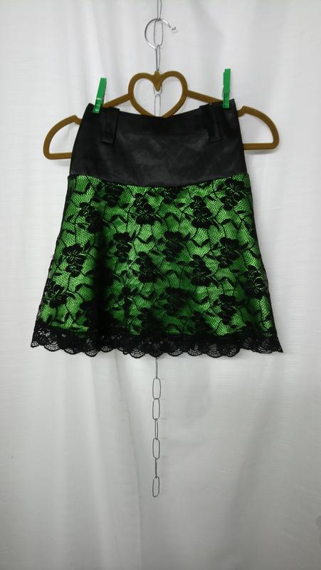Красивое сочетание Чёрного стреч атласа+ красивый гипюр + яркий салатовый подьюпник Цвет подьюпника красивее чем на фото Замок сбоку Дл. по бок шву - 44 Пот-32,5(тянется Поб-43(тянется Низ - 72 XS/S