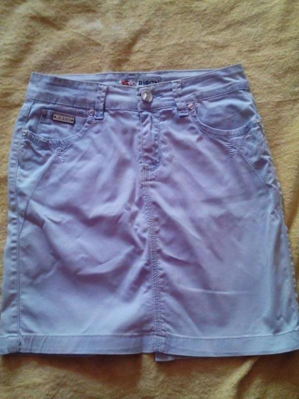 Юбченка джинс. Светло-голубого цвета. Состояние - идеальное. Сзади два кармана.Размер 28. Длина 40см.; ПОБ - 41см.; ПОТ - 36см.