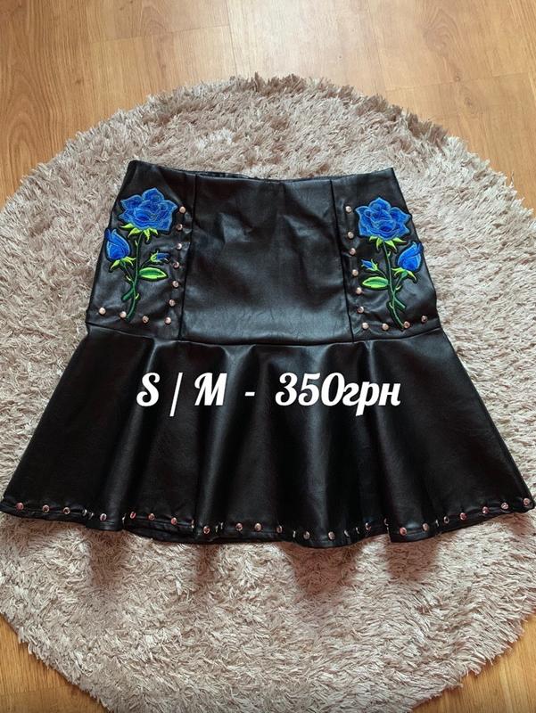 Юбка еко кожа с вишивкой