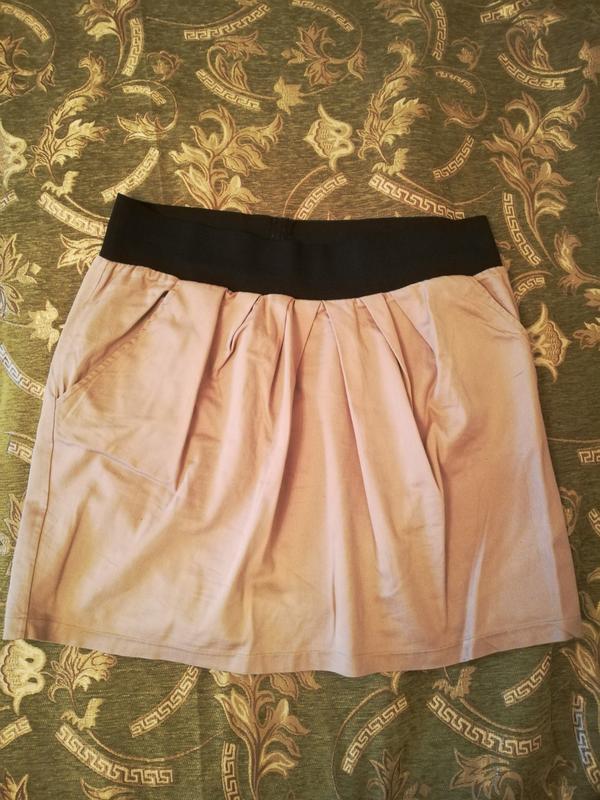 Длина 44 см ПОТ 43 см Юбка на резинке, пояс растягивается до 55 см Имеется 2 кармана