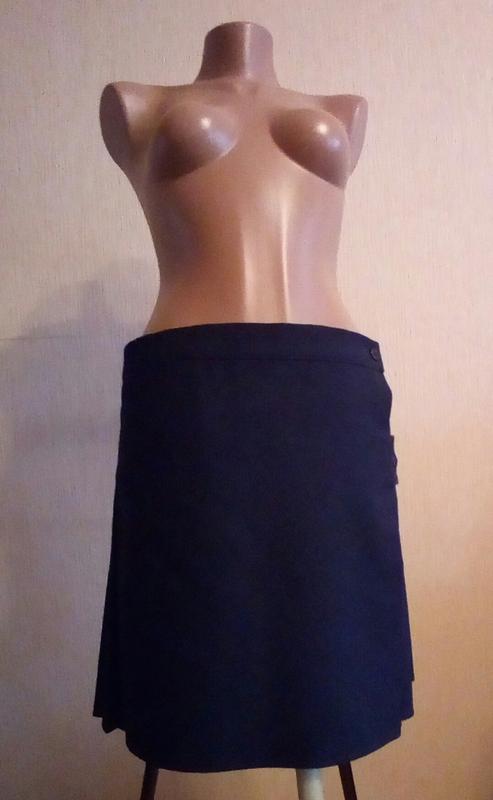 Оригинальный дизайн. Юбка тёмно-синяя, 100% Polyester, спереди прямая - фиксация на застёжке типа запах сзади складочки. Отличное качество. Длина от начала пояса 42 см. Обхват талии 76 см. Замечательный вариант для учёбы. Выбирайте подарок к Вашему заказу из бесплатных вещей.