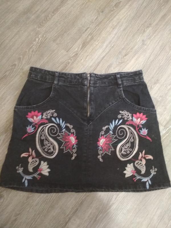 юбка в хорошем состоянии. вышивка. размер Л. по бокам карманы. материал джинс. плотная! очень классная!!!