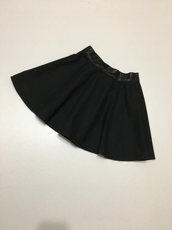 Пишна джинсова спідничка з поясом під шкіру, в дуже хорошому стані, 83%котон,17 поліестер, розмір 8. Заміри : ПОТ 32,5, довжина 38,5см.
