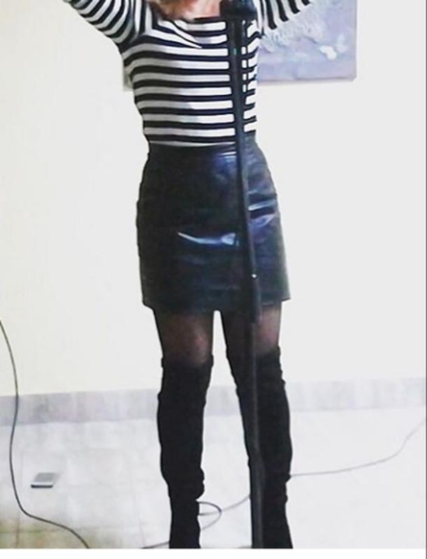 Юбочка до колена из натуральної черной кожи. Размер М-L. Длина - 40 см. Полулбхват талии - 36 см. Состояние - хорошее.