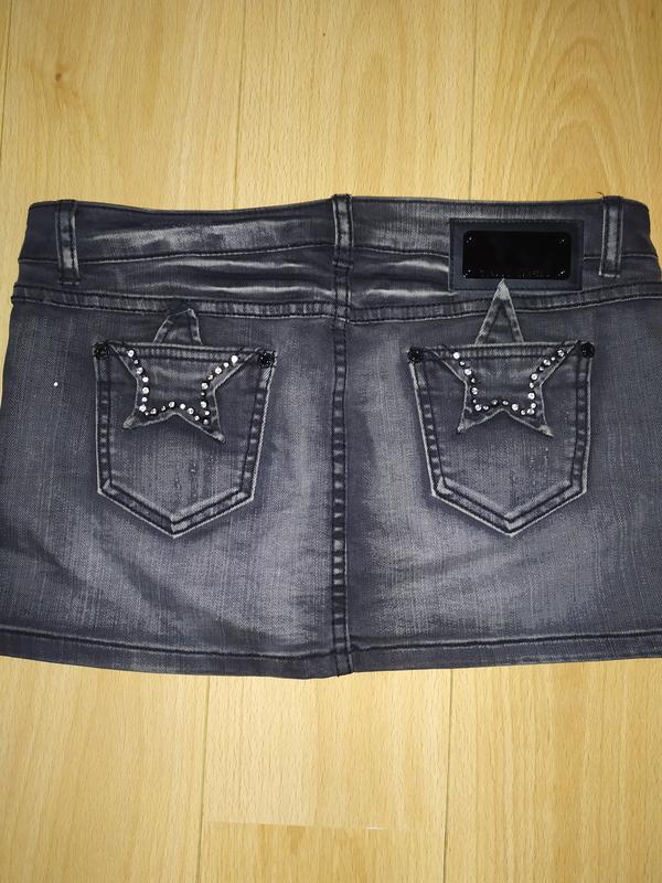 Спідничка джинсова міні з зірками і стразами на кишенях ззаду. Без дефектів. Дивіться інші мої оголошення. При покупці декількох речей знижка.