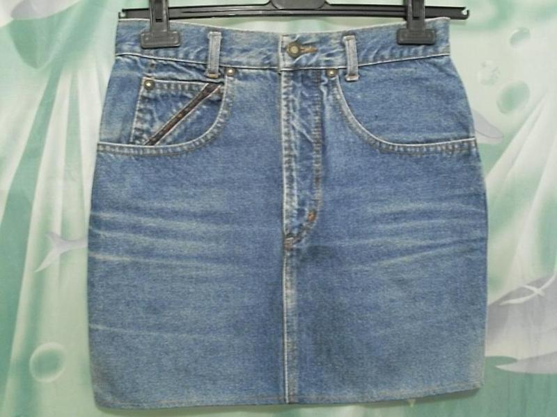 (Размер), ориентируйтесь по мерочкам: В хорошем состоянии ! Прикольная джинсовая юбочка. Цвет: светло-синий, сзади 2 больших кармана. Юбка слегка заужена к низу. Длина юбки – 40 см. ПОТ – 35 см. ПОБ - 45см. Ширина по низу – 43 см. Дефектов нет !