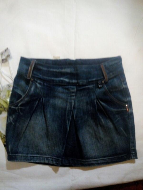 Синего цвета, сзади застёжка (змейка) Длина - 36,5 см ПОТ - 38 см ПОБ - 50 см Юбка бомбезная спереди 2 боковых кармана, сзади тоже 2 кармана.