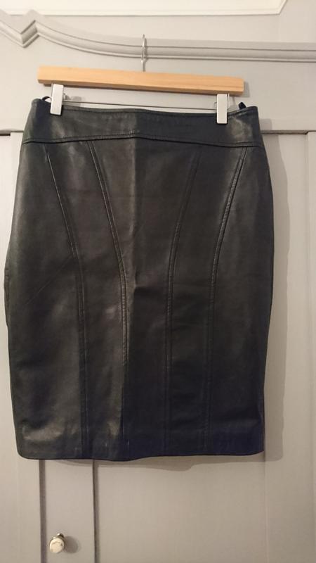 155 Юбка в идеальном состоянии, черного цвета, слегка зауженная, шлица, подкладка. Размер М. длина 58см При поясе 42см при бедер 49см ширина юбки внизу по 43см