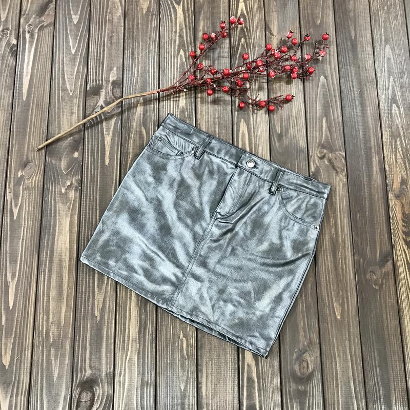 Серебристая юбка из кожзаменителя Красиво смотрится, переливается на свету H&M Размер EUR 38