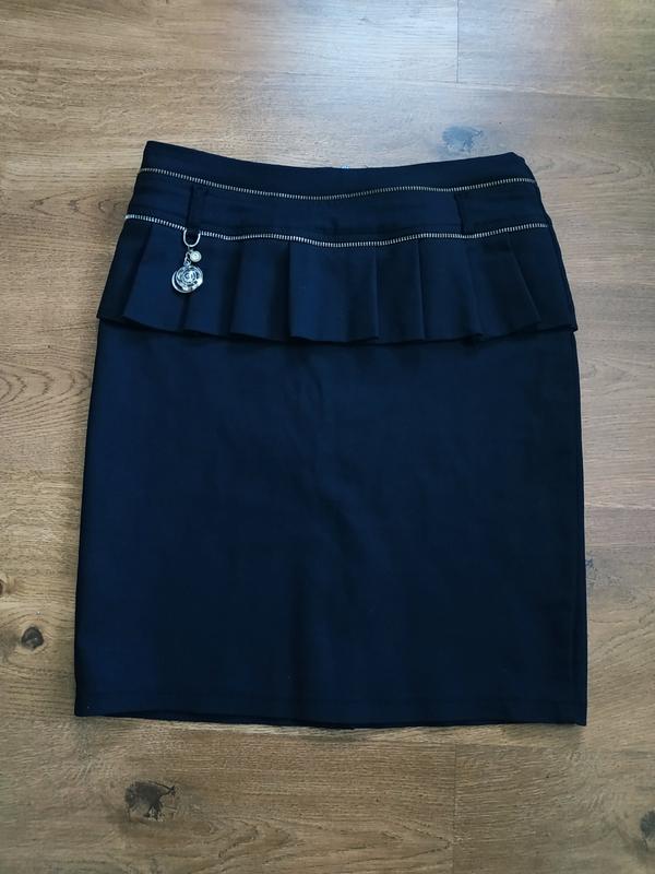 Чорна класична спідниця в ідеальному стані з рюшами по колу та декором спереду Довжина 49-50см