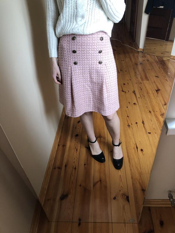 Розовая юбка со складками и пуговицами на подкладке Обхват талии 70 см Обхват бёдер 98 см Длина 54 см