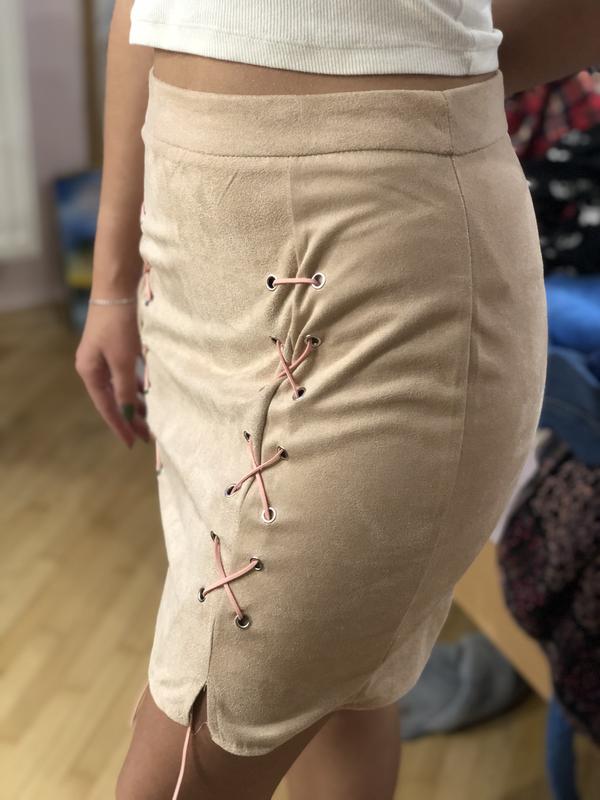 Сучасна спідниця мерехтливої коліру замшева, розмір с-м