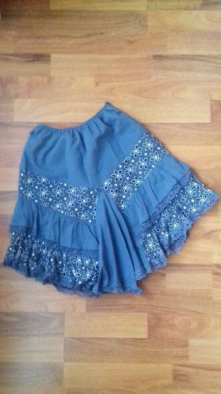 Юбка на резинке, с перфорацией, бедра свободные. Подойдет на размер xs s m. Длина спереди 47, по бокам 40 см. На подкладке. Без дефектов и следов носки. В подарок к юбке ТОП!!!