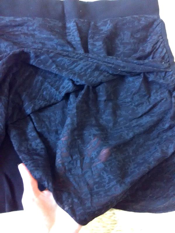 Черная мини юбка из стрейчевой ткани (вискоза) фирмы Topshop, декор - спереди внахлест идет полупрозрачная ткань серо-черного принта. Сзади - рабочая молния по всей длине юбки. юбочка на резинке. Размер указан EU 40, маломерит, подходит на S. Новая, ни разу не надевалась, заказывала через интернет, не села так, как хотелось. Длина - 37см, ПОБ -41см, ПОТ - 34см, ткань тянется.