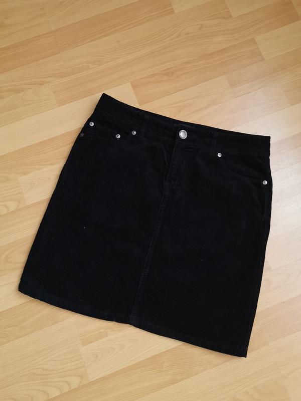 Чорна вільветова спідничка є кишеньки спереді і ззаді. Довжина виробу 45см По талії 39см По бедрам 46см Низ 48см