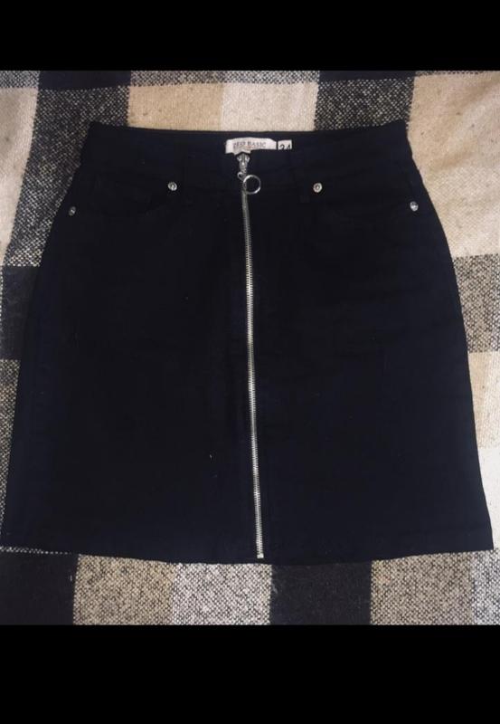 Джинсовая чёрная юбка. На сплошном замке. Размер XS-S{ длина 43 см} Состояние идеальное. Новая, без бирки. Производство Турция.